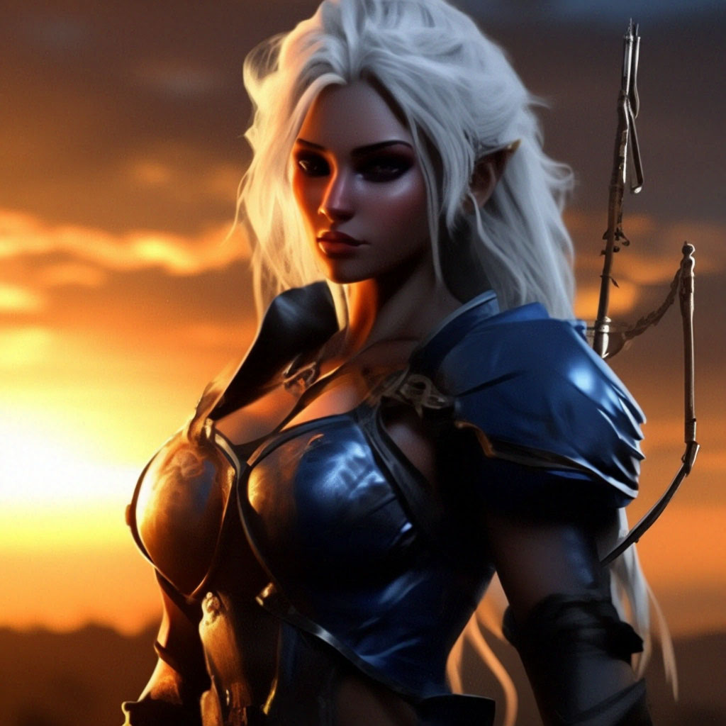 "Dark elf archer dark blue skin white ." - image created in Shedevrum
