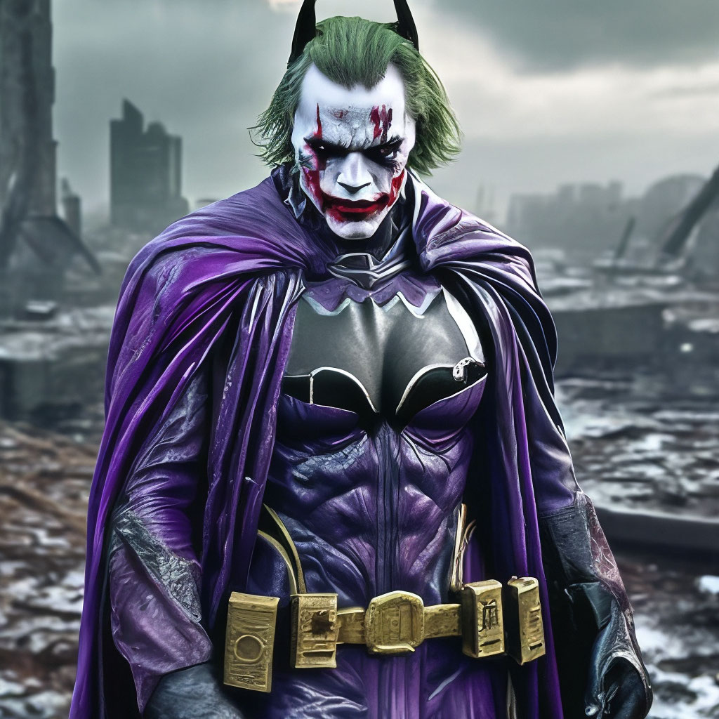 "Joker in Batman costume photorealism." - image created in Shedevrum